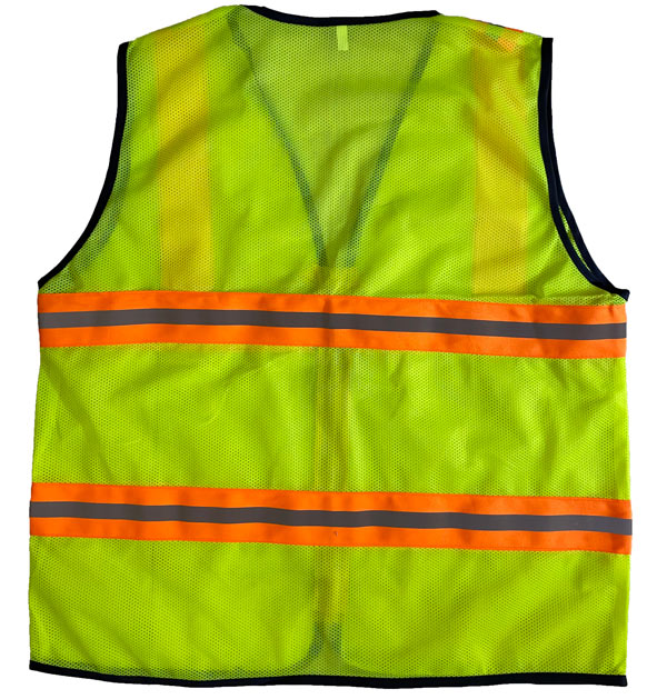 + Chất liệu: Áo may hoàn toàn bằng chất liệu vải lưới mềm mại, thoáng mát kết hợp với sợi phản quang vải 3M 5cm màu cam.