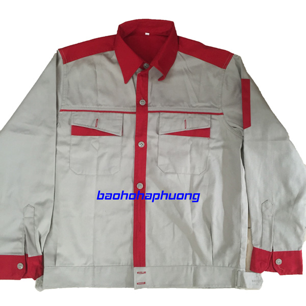 - Quần áo bảo hộ kaki Hàn Quốc màu ghi phối đỏ được may bằng chất liệu vải kaki Hàn Quốc lóng to dày dặn, chất vải mát.